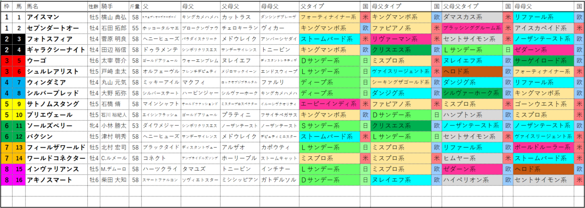 このコースは父北米型血統が非常に優秀で3着内の馬の統計を取ると父北米型が5割を超えるんです。そしてダートの直線も長い東京ですから差しが決まる傾向もあります。父日本型のサンデー系はあまり良くないのですが、母系に北米型血統が入って、末脚が使えるタイプなら狙ってみる価値はありそうです。