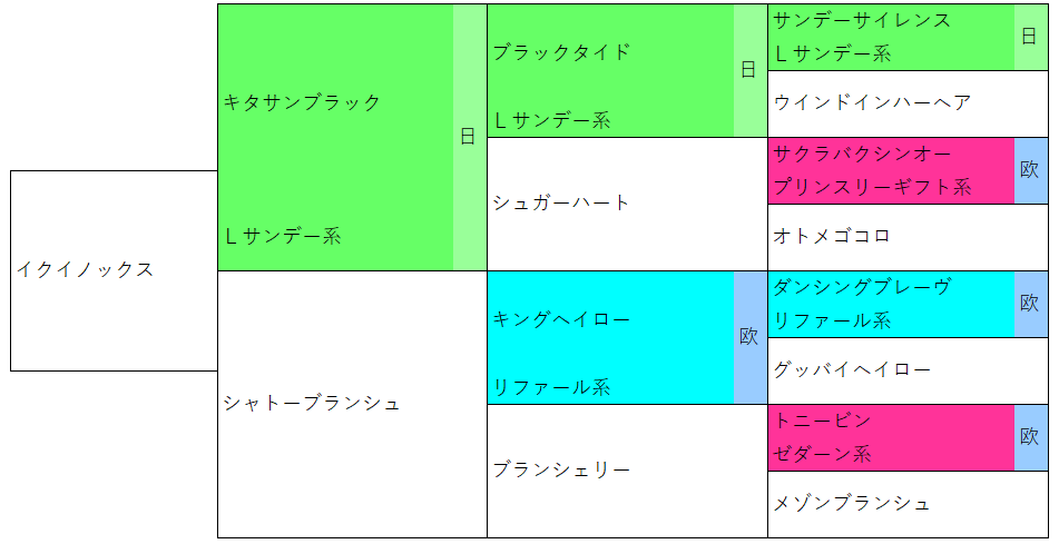 そのイクイノックスを下してダービー馬となったドウデュース。成長力のある父ハーツクライと成長を早める北米型血統が並ぶ母系。ほこたてのような話になるが、2歳時からの活躍を考えれば筆者はやや後者的な考えを主張している。サンデー系×北米型血統のハマった時の爆発力にはどの血統も敵わない部分もあるのだが。