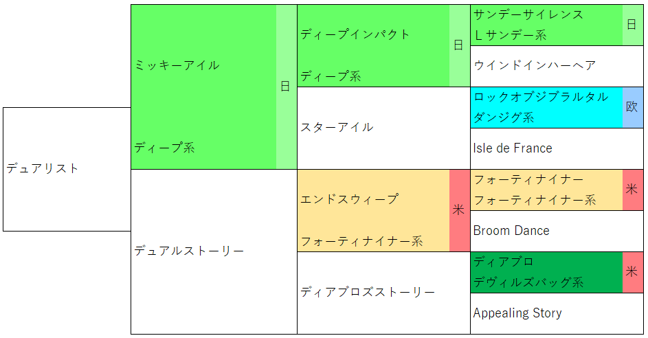 ・となると北米型、欧州型に注目してみるのだが、これがなかなか難しい。上記の父・母父のワン!ポイントを見ていただければわかると思うのだが、ほぼきれいに3等分されてしまっている。日本型、北米型、欧州型という括りではなくて系統や種牡馬個性から分析していきたい。